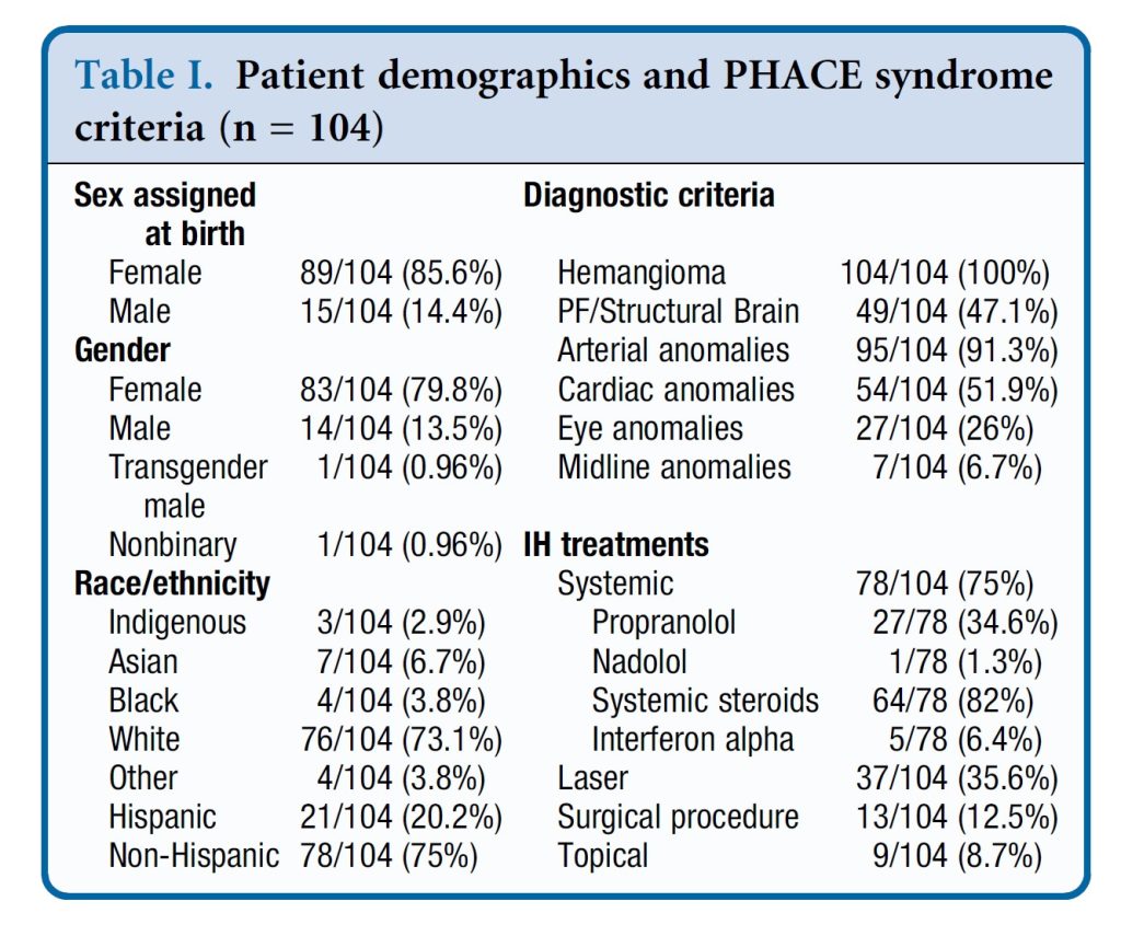 Sonuç: PHACE sendromu, IH kalıntıları, baş ağrısı, öğrenme farklılıkları ve ilerleyici arteriyopati dahil olmak üzere hafif ila şiddetli uzun vadeli morbiditelerle ilişkilidir. PHACE hastaları için yetişkinliğe kadar birincil ve uzman takibi kritiktir.